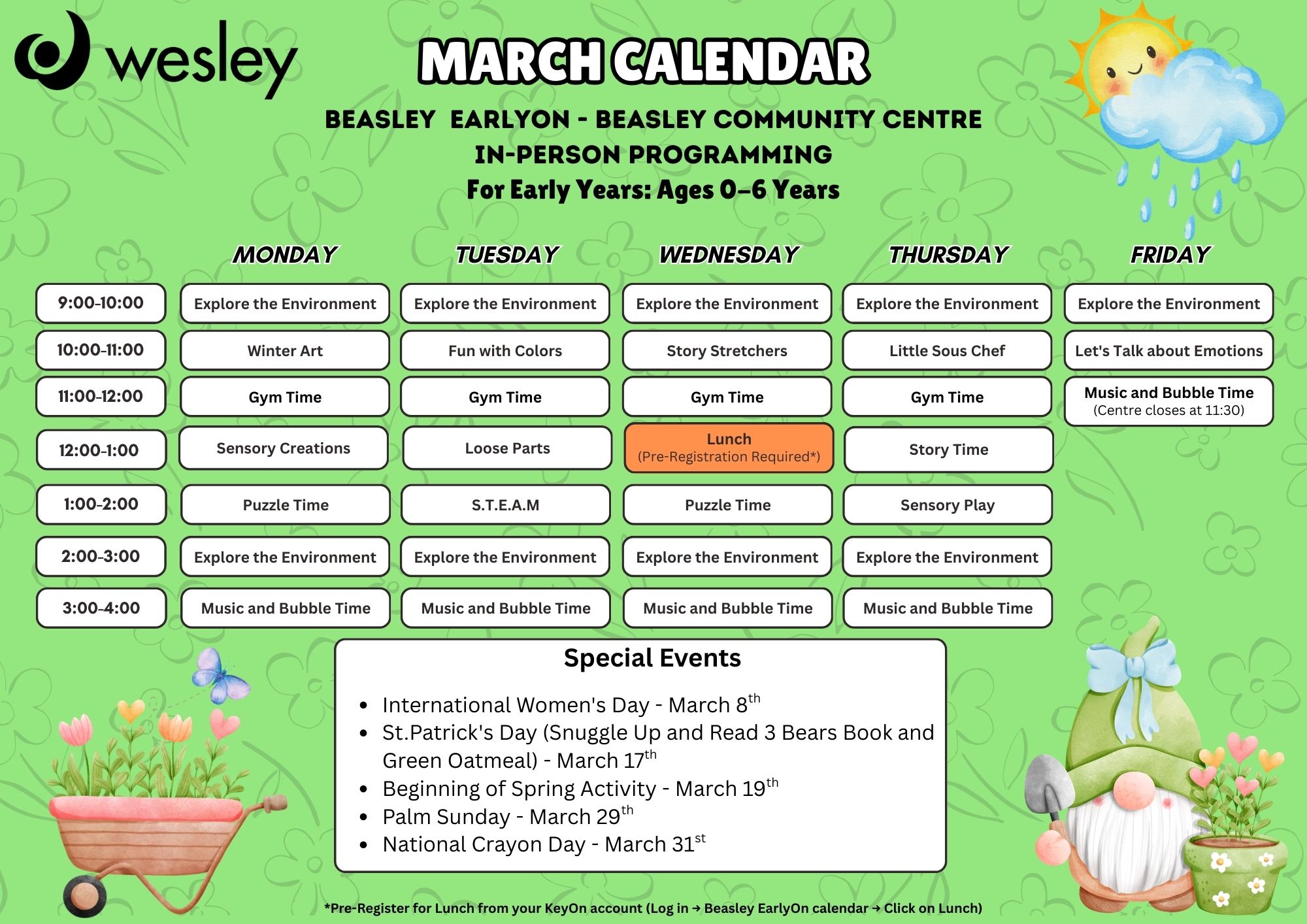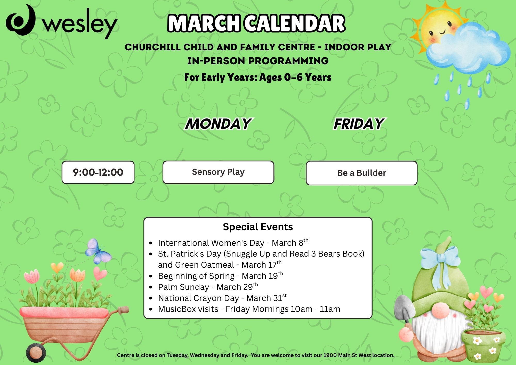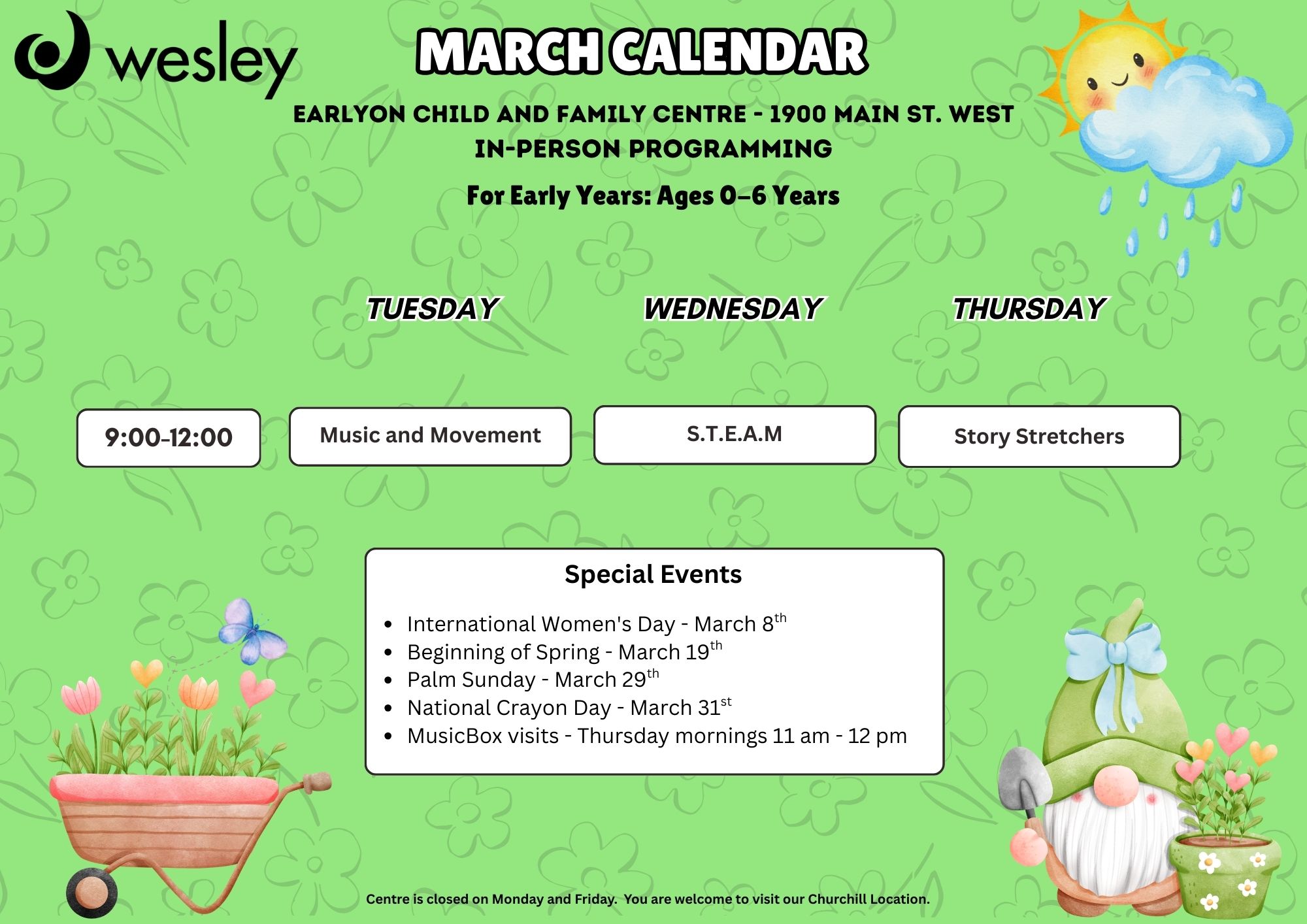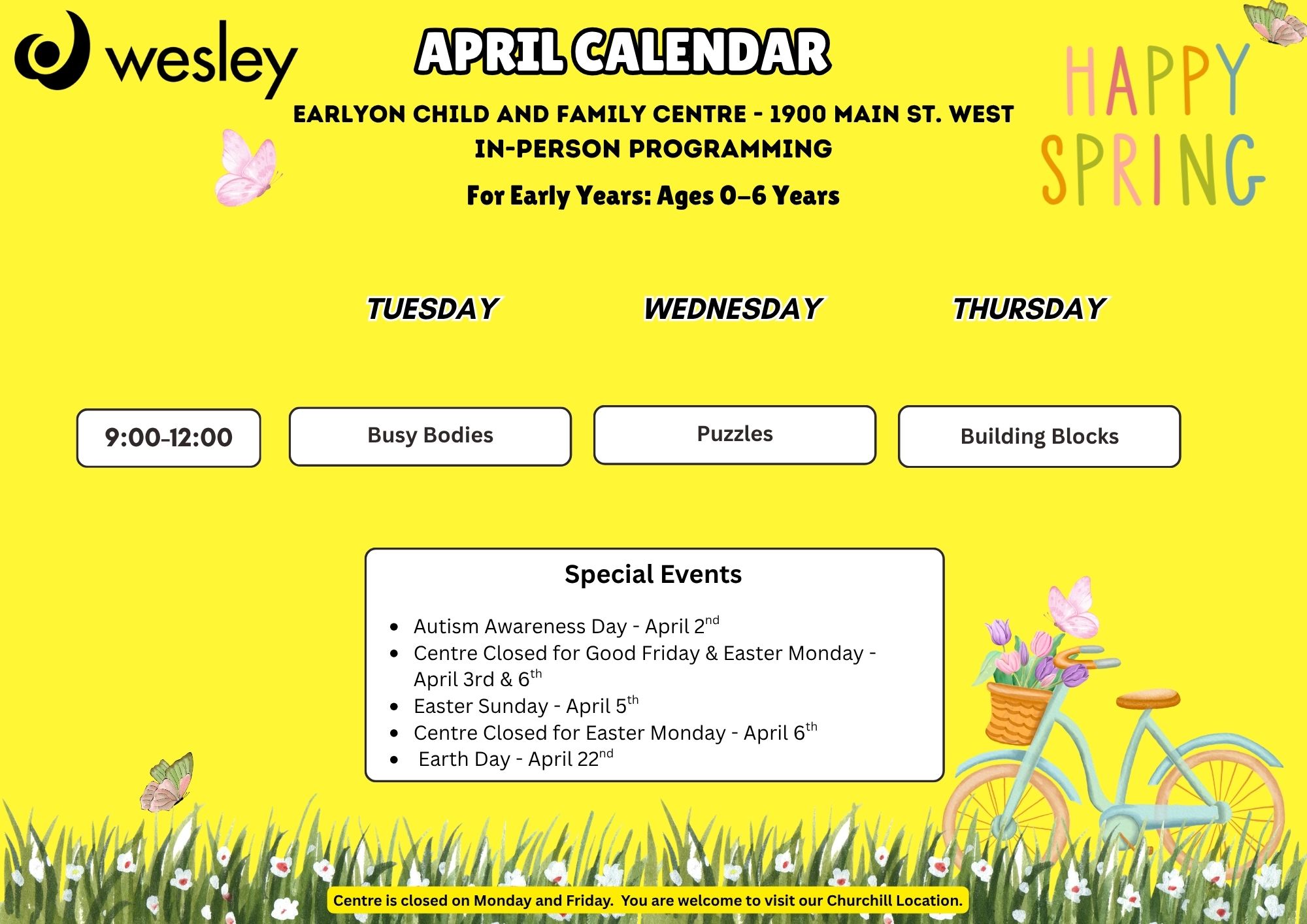 At Wesley’s EarlyON Child & Family Centres, your family’s well-being is our top priority. We’re sharing an important letter from the Public Health Services about preventing illness and keeping everyone safe. Please take a moment to read the attached message, and don’t hesitate to reach out if you have any questions.schedule!
