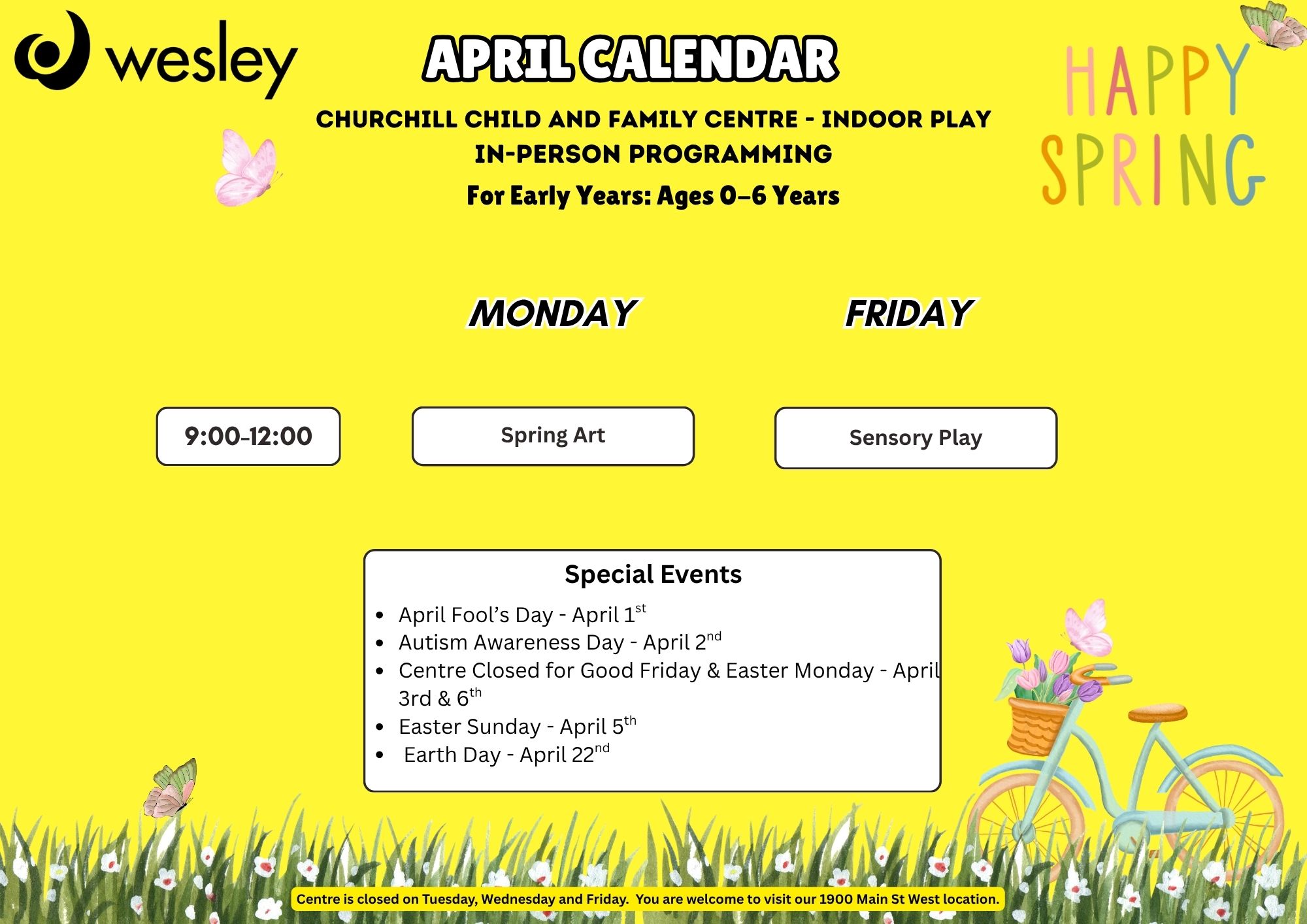 Wesley’s EarlyON Child and Family Centres are innovative hubs for early learning and family-centered support, serving children up to 6 years old, along with their families and caregivers.